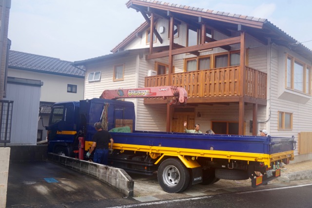 搬入は二日がかりで、約8トンの石群が到着しました。