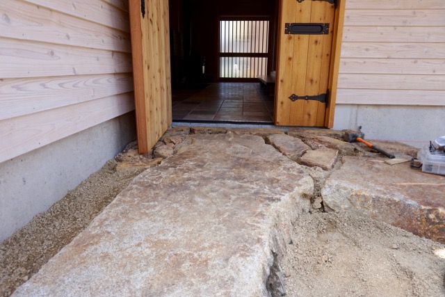 1Fの美しい通り土間から扉を開けて出る玄関のエントランスはどんな素材がふさわしい??