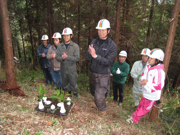 その間、伐採した木は、山で静かに葉枯らしの時を過ごします。
