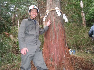簡単な神事のあと、100年生のヒノキの生命をもらって、200年の生命を持つ家に形を変えて、生命を継承する行事でした。みんなとても厳粛な気持ちになり、喜びが爆発しました。