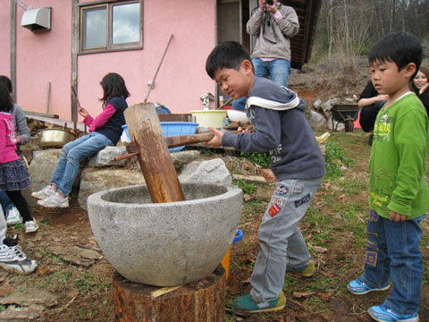 来年は、さらに一歩でも前進できるようにと願いながら、今年の実り多い収穫を喜び合い、感謝を込めて、祝いの餅つきをします。