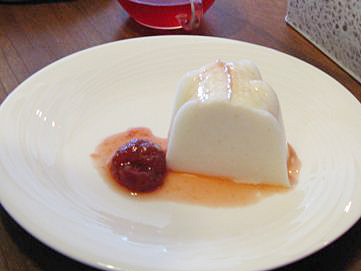 そしてデザートはヤギミルクの「ヨーグルトムース いちごのソースをかけて」