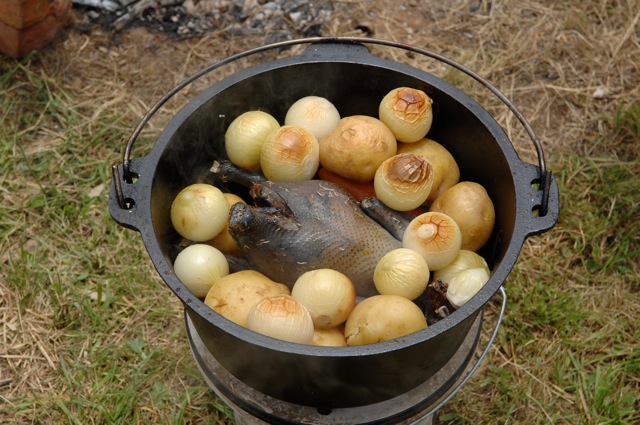 このダッチオーブンはとても便利でおもしろい鍋で、煮る、焼く、蒸す、揚げる、ロースト他様々な調理法が可能。