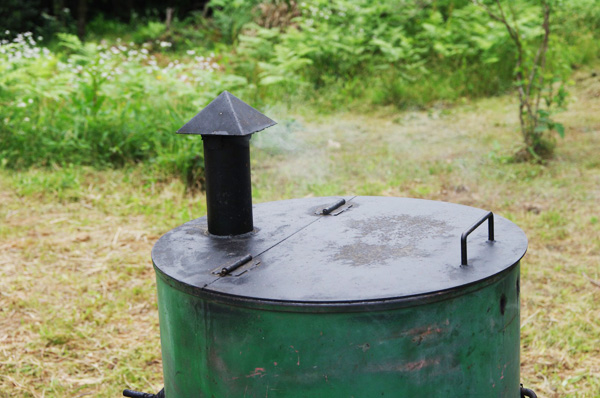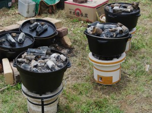 後はあらかじめ火を熾しておいた炭を七輪にタップリ入れ鍋の上にも炭を載せて一時間程ほっておくだけ、途中鍋と蓋の隙間から蒸気が出ていい匂いがしてきます、野菜がしっかりしんなりして来たらで完成です。