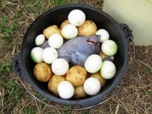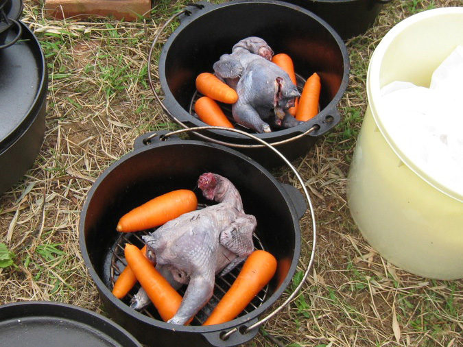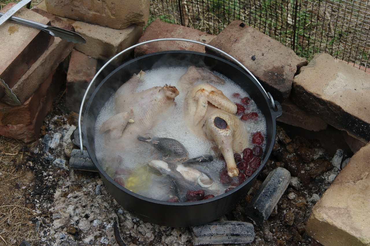 夢千年の暮らしPRODUCE & DESIGN自家菜園で立派に育った様々な鶏達とダッチオーブンと呼ばれる厚手の鋳鉄の鍋が今回の主役的存在。