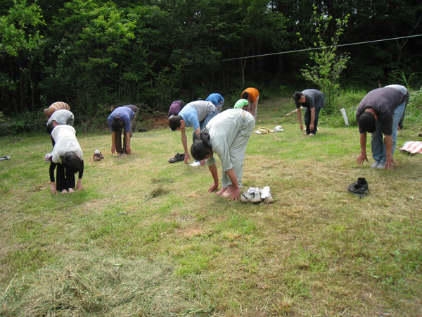 食後の酒井先生の青空ヨガ教室はとても気持ちがよかった。