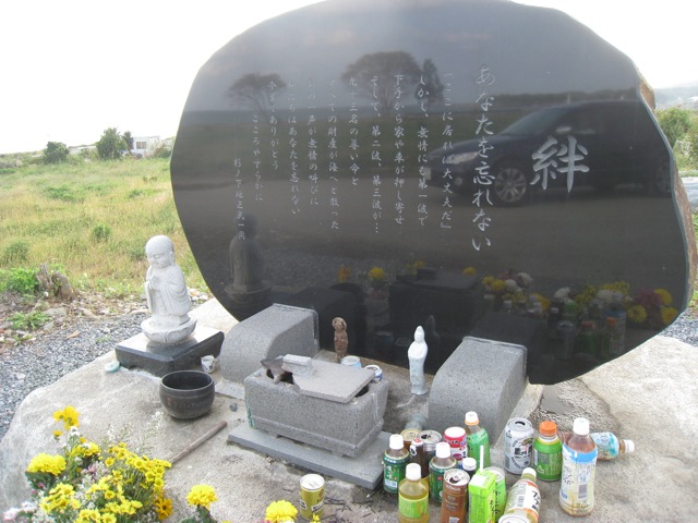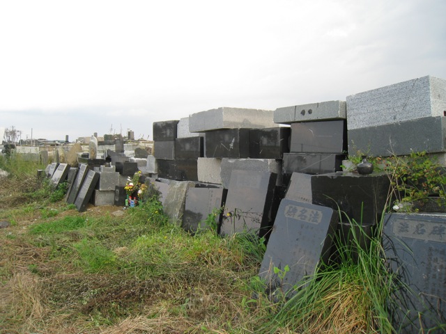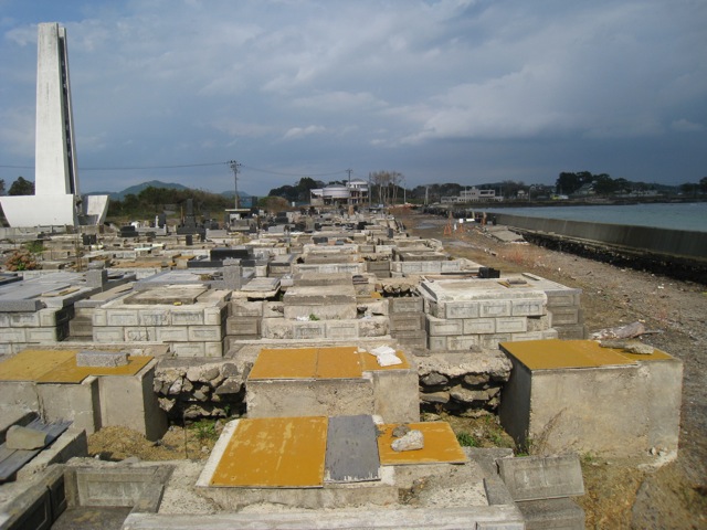 海岸に建つ明治の津波の慰霊碑とそのときの犠牲者のお墓群も今回の津波で壊滅しました。