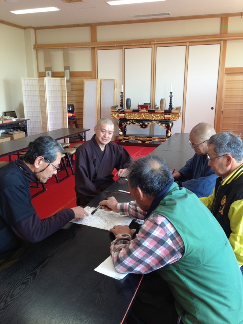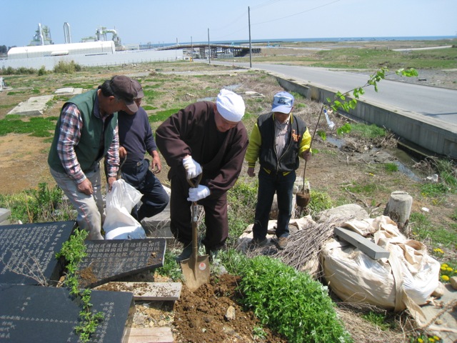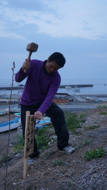 朝一番に気仙沼市階上に到着。地福寺の片山住職始め皆さんが勢揃いで待ち構えてくださる。なんと30本植えるんです。ここから始まって・・・・と地図で確認・・・檀家さんには植木屋さんもいて心強いかぎり。