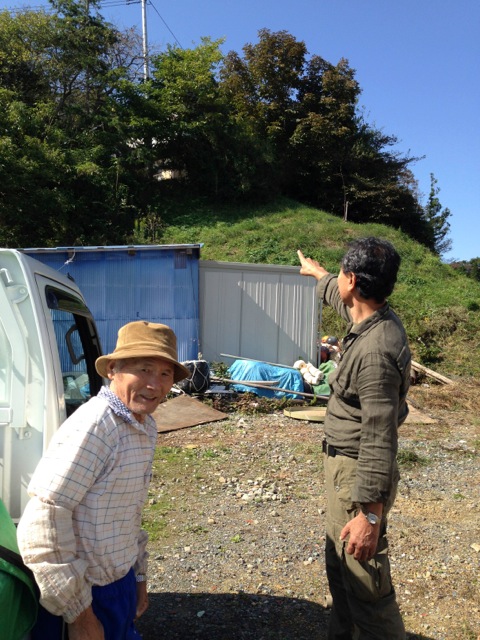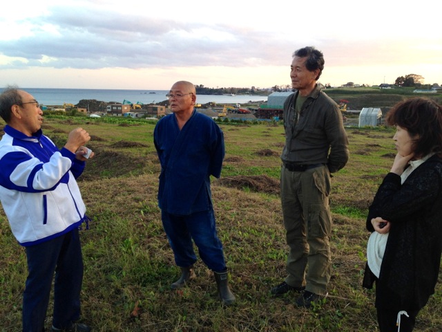 階上の海岸に近い畑。住人のHさんご家族が津波体験を話してくださった。どうやらご主人は顔だけ出して津波に流され、はるか後ろの一段低い線路に流れ込み助かったとのこと。流れる様子を妹さんが高い橋の上からみていたらしい。
