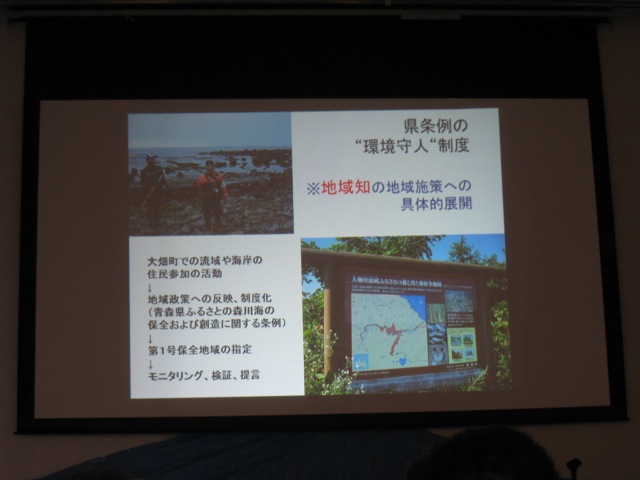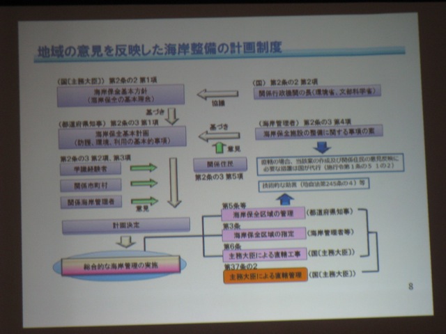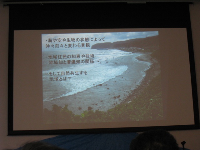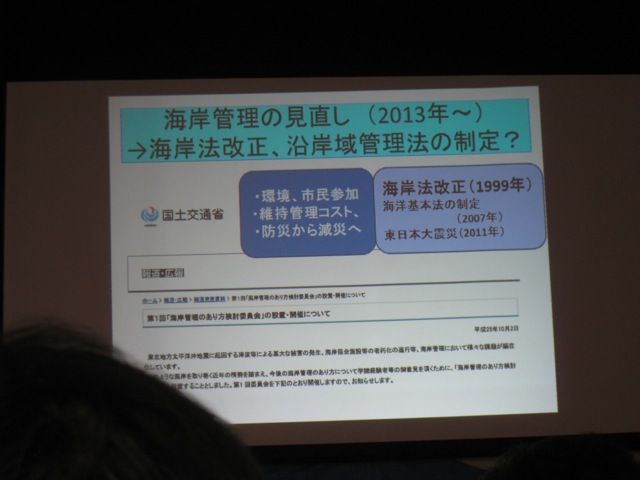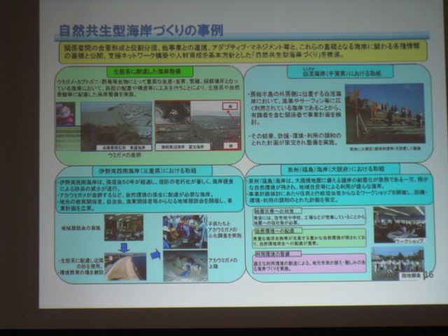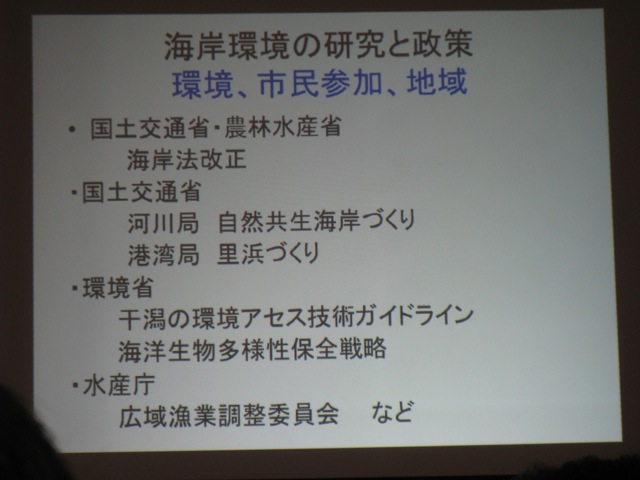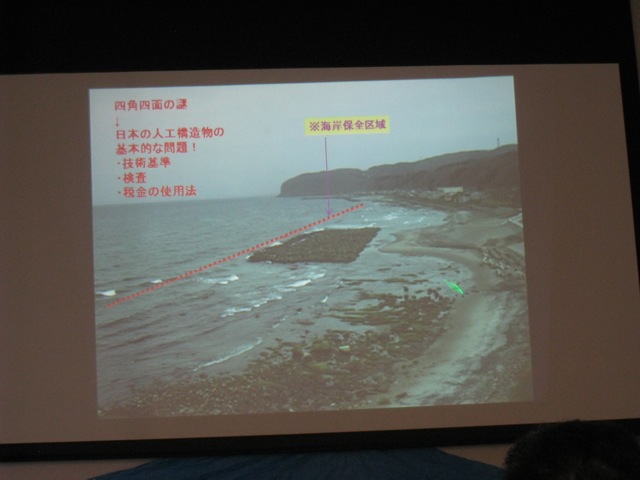そんな折、東京で「自然保護協会」主催の「海と共に生きる~日本の海岸は今~」というシンポジウムに事務局黒田2名で参加しました。各地の取り組みや現状がいろいろと紹介されて、会は盛況のうちに終ろうとしたとき、後ろの方にいた女性が手をあげて、意見を述べられました。