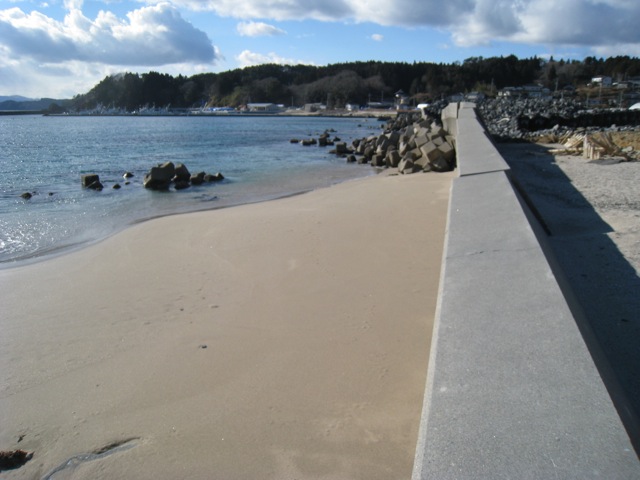 18日小泉に向う朝、時間の合間をぬってさっそく中山の浜へ