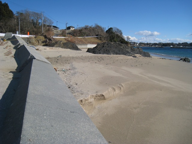 馬場中山の反対側の泊り浜、長須賀の海水浴場です。ここも防潮堤計画がありますが市民の皆さんが再考を願っています。