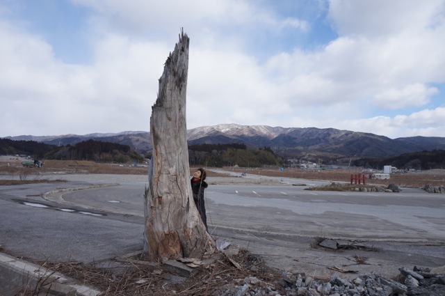 元陸前高田駅前ロータリーに未だに残る大木にそっと手をふれてみました。