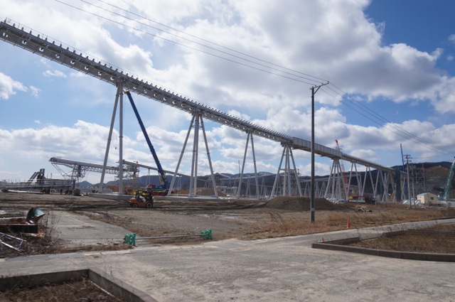 これが先日来、報道されている巨大な土を運ぶ装置です。一山がどんどん土を削られて、みるも無惨
