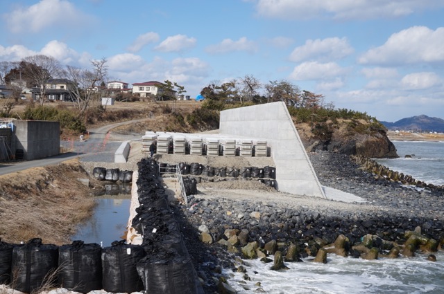 今、議論されている防潮堤を実際に見てみよう・・・と野々下の浜におりてきました。