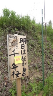 2012年の春の終わりから、津波到達地点にエゾヤマザクラ実生苗を、一本一本植樹してきましたが、もう既に100本を超えました。