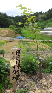 現在は、南三陸町の志津川湾を囲む地域に植樹した桜の本数が多いのですが、桜が大きく育って、花咲く頃には、志津川湾をのぞむ小高い土地に、点々と咲く明日は我が身の千年桜が俯瞰できて、未来を生きる人たちに、その昔、この桜のところまで津波が来たんだよ、と語り伝えられることを想像しています。