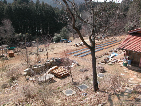 3月13日しいたけ菌打ちの当日。素晴らしい晴天です。春の暖かい日が増えてきました。